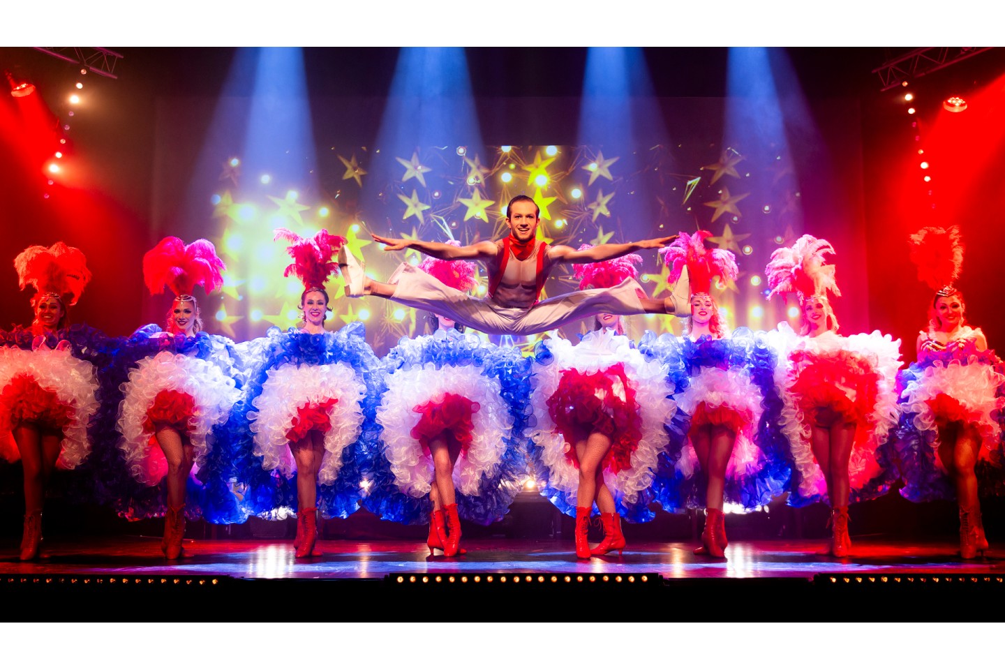 Placé sous le signe de l’élégance, de la grande Revue, de l'humour et du rêve, cette étonnante Comédie Music-hall vous réserve du grandiose et de l’inédit. Vous serez étonnés par la diversité des tableaux et la profusion de plumes, de strass et de paillettes de ce grand spectacle de cabaret.